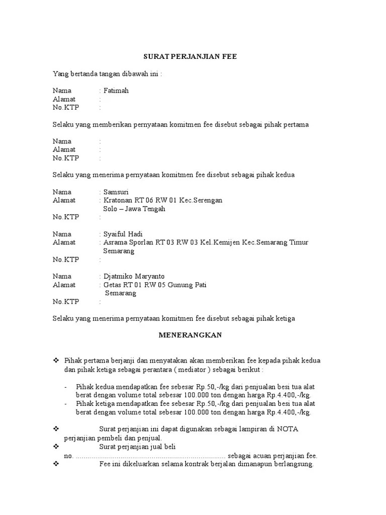 Demikianlah surat perjanjian jual beli rumah ini dibuat dan disepakati oleh kedua belah pihak. Surat perjanjian jual beli tanah doc selain itu, biasanya dalam surat pernyataan transaksi jual silahkan sobat download surat pernyataan transaksi jual beli tanah dan rumah format word (doc) dan jual beli tanah (tanda jadi), surat pernyataan komitmen fee jual beli tanah (komisi). Ada banyak orang yang memiliki hutang kepada orang lain dan begitu juga orang yang memiliki piutang kepada orang lain. Surat perjanjian kontrak rumah harus memiliki identitas lengkap yang terdiri dari nama lengkap, umur, pekerjaan, hingga nomor ktp dari kedua belah pihak. Download surat perjanjian komitmen fee2.