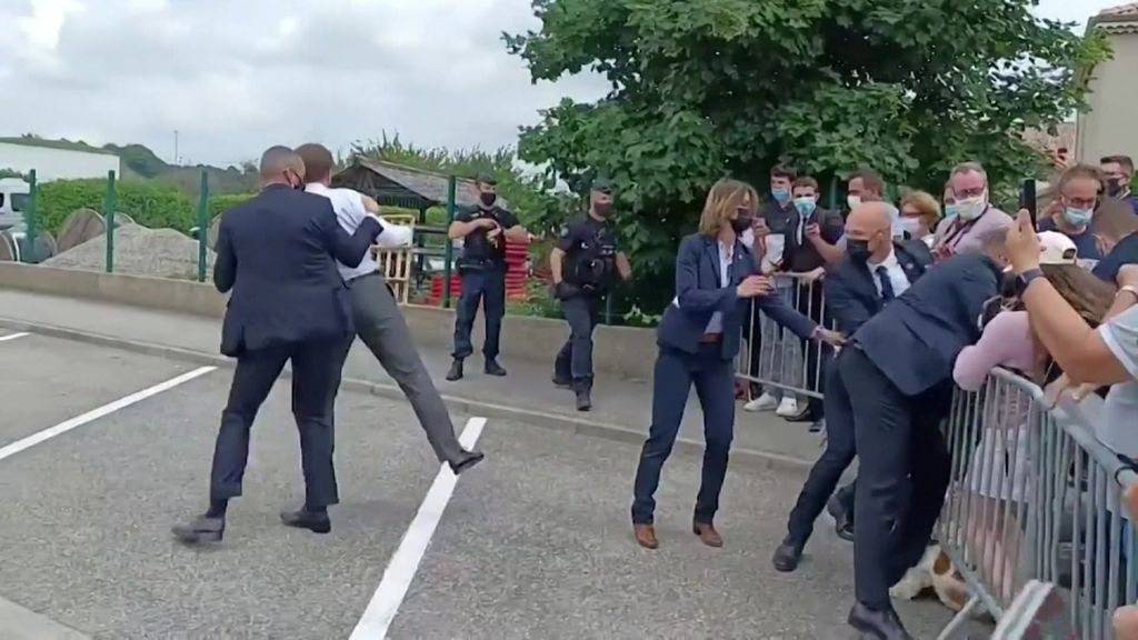 Bodyguards quickly seized upon the assailant and bundled him to. Dramatic footage shows macron's security unit swoop in to protect him. The incident took place as macron took part in a walkabout session in a town in southeastern france. French president emmanuel macron was slapped in the face during a visit to southern france before he was quickly pulled away unharmed by his bodyguards. His administration confirmed only an attempt by a male attacker at an appearance in southeast france.
